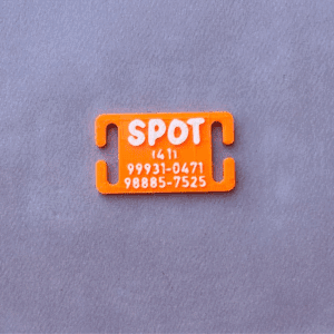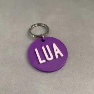 Digite o nome do pet (Frente) e até dois telefones (Verso). Tudo gravado em 3D que não apaga.