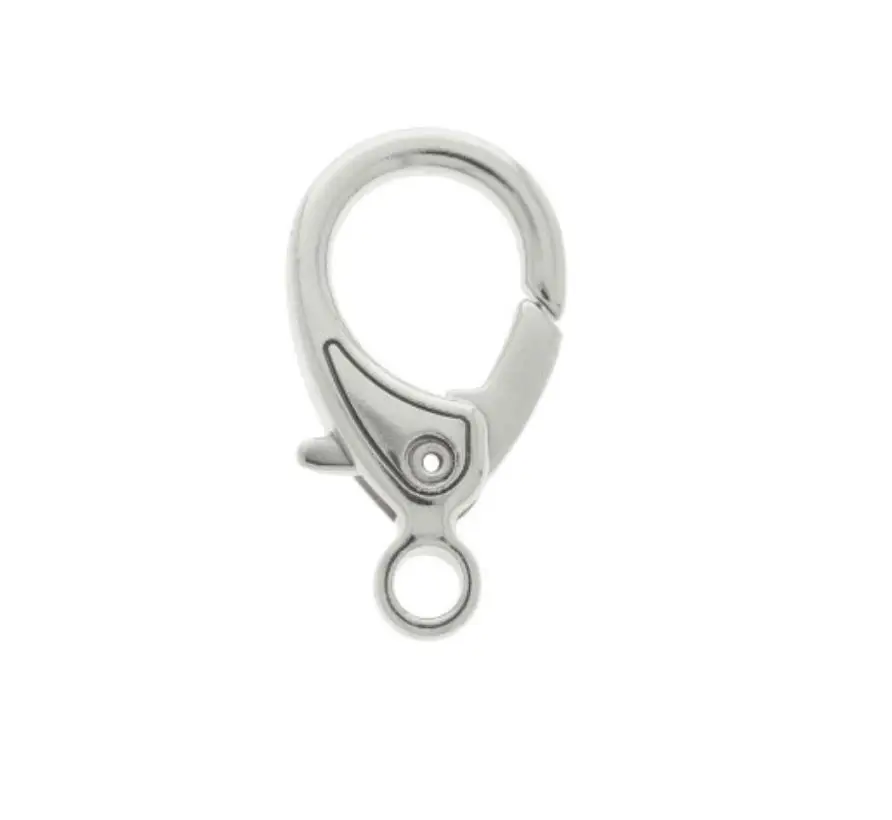 Além de prático, ele oferece mais segurança que as argolas tradicionais, evitando que a plaquinha se solte acidentalmente durante passeios ou brincadeiras mais agitadas. O acabamento niquelado confere um brilho prateado elegante que combina com qualquer estampa de coleira e com todos os metais das nossas plaquinhas.