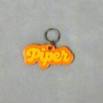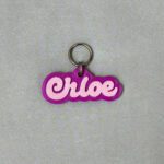 A Tag Contorno 2.0 traz um estilo delicado e sofisticado, com o nome do pet em tipografia cursiva, moldado em 3D.