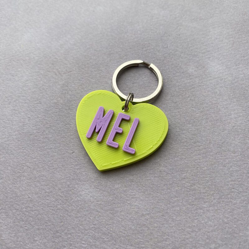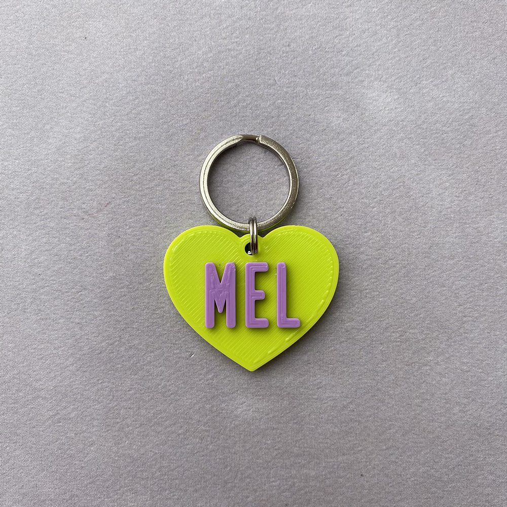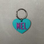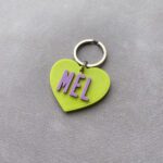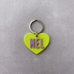 A Tag Coração é feita para tutores apaixonados. Seu formato encantador e o acabamento em impressão 3D valorizam o nome do pet em alto relevo.