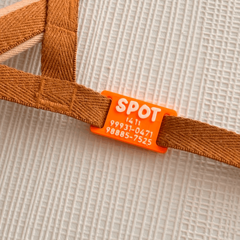 A tag de identificação mais prática para peitorais e coleiras! Encaixe rápido, seguro e sem argolas.